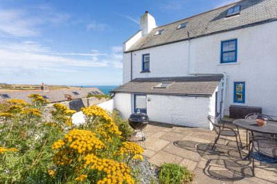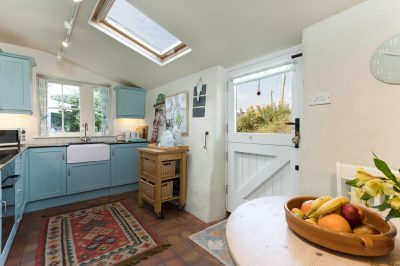 Sympathetic restoration has retained or restored original features such as the fireplace, wide wooden floorboards and sash windows. The cottage is well equipped, comfortably furnished and tastefully decorated using tranquil seaside colours and natural fabrics. Plentiful windows on three aspects ensure that Kittiwake is light and airy with excellent views over the valley to the sea. It’s cool in summer and cosy in winter, with a log burner in the sitting room and heaters in every room.